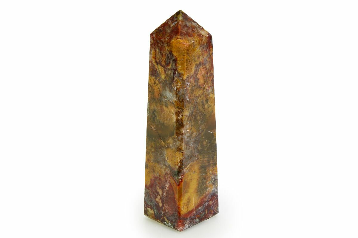 This is a fascinating 4" tall polished tower of King Cobra Jasper, a striking orbicular jasper from India that’s also traded under the name Bombay Jasper. Its surface is patterned with bold, rounded “scales” and contrasting nodules that resemble the markings of a cobra, giving the stone its distinctive name.