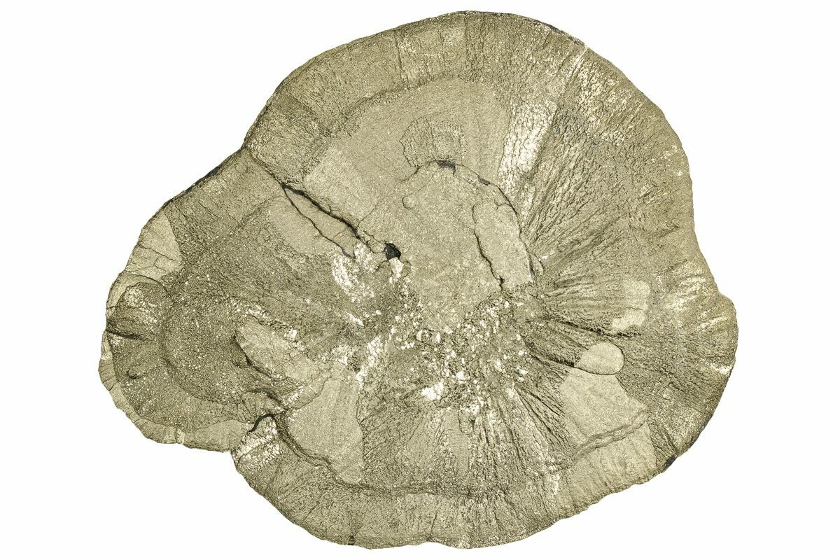 Pyrite suns or pyrite dollars are an unusual pyrite formation: striations radiate out from the center like rays of the sun. They are found in narrow, compacted seams of slate interbedded in the 300 million-year-old coal deposits near Sparta, Illinois. They are recovered as a byproduct of local coal mining operations, but are increasingly difficult to source as the coal mines in Illinois shut down one by one.