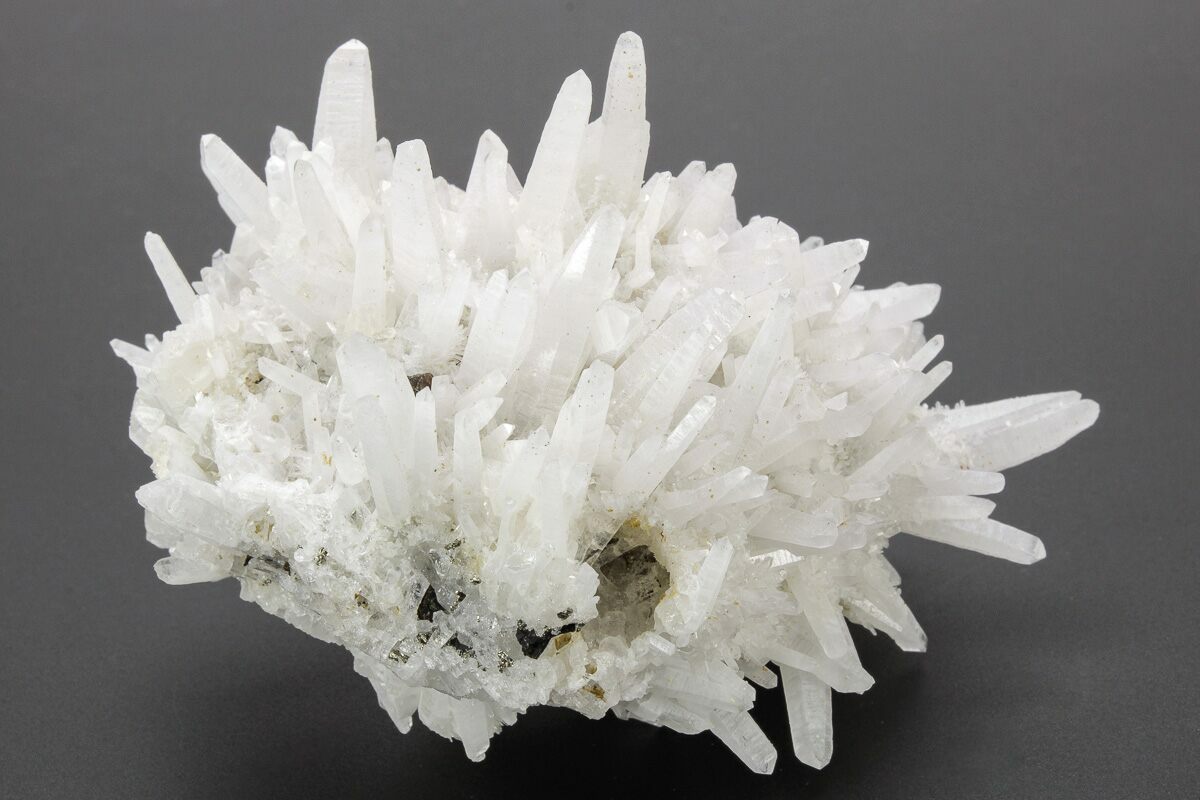 Quartz is the name given to silicon dioxide (SiO2) and is the second most abundant mineral in the Earth's crust. Quartz crystals generally grow in silica-rich environments--usually igneous rocks or hydrothermal environments like geothermal waters--at temperatures between 100°C and 450°C, and usually under very high pressure. In either case, crystals will precipitate as temperatures cool, just as ice gradually forms when water freezes. Quartz veins are formed when open fissures are filled with hot water during the closing stages of mountain formation: these veins can be hundreds of millions of years old.