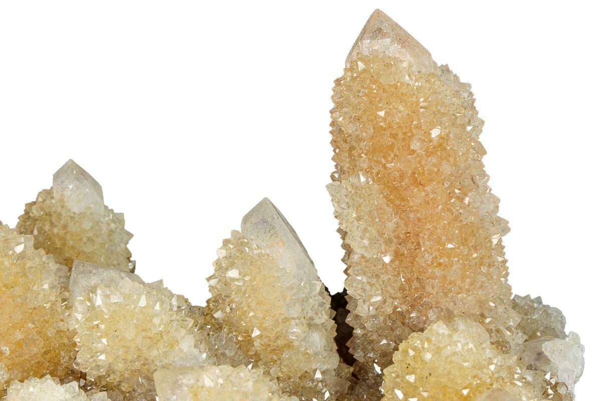 This is a beautiful cactus quartz cluster from the Boekenhoutshoek area of South Africa. Portions of the cluster have an underlying orange coloration due to the presence of iron oxides.