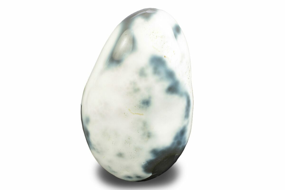 This is orca agate (a.k.a. “Orca Stone”) from Madagascar which has been hand-polished into a freeform. This beautiful piece is 5.1" tall and has a mixture of blue and white agate. The base has been cut flat so it can displays nicely on a flat surface without the need for a stand.