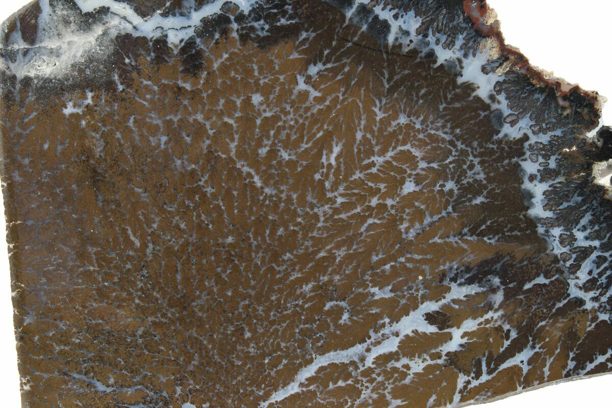 This is a gorgeous polished slab of Canadian River Plume Agate that was collected from Texas. This specimen features a mixture of orange, red and white-blue coloration. It comes with an acrylic display stand.