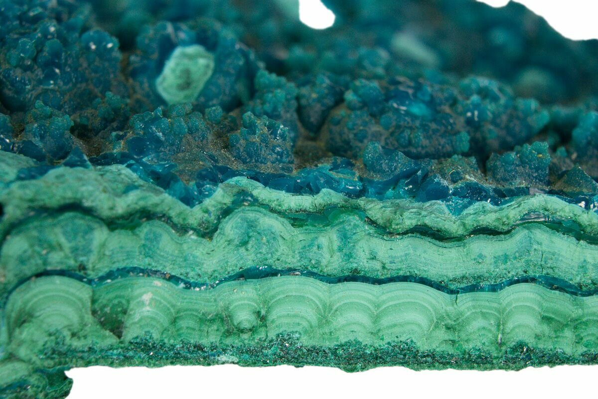 Malachite results from the weathering of other copper ores, and is very often found associated with other copper-based minerals such as azurite and chrysocolla. It can be found in copper deposits around the world, but the Democratic Republic of the Congo is the primary source for polished malachite and mineral specimens.