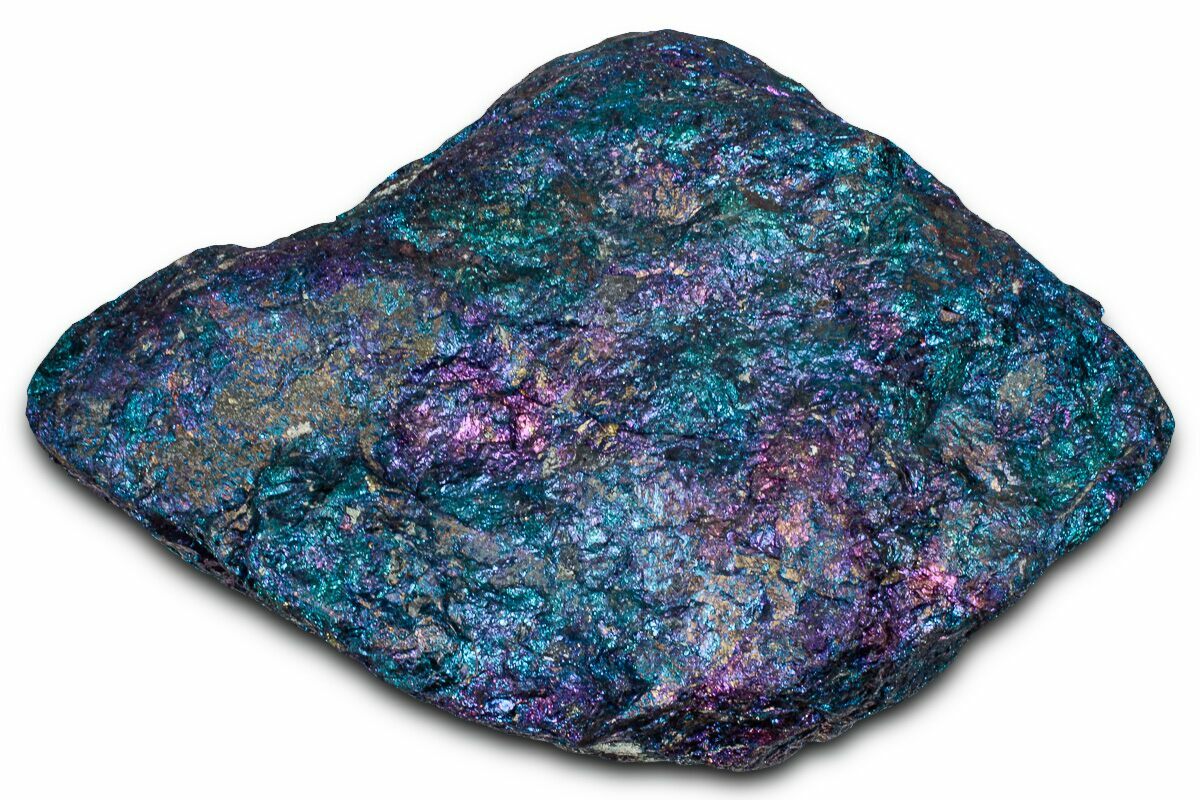 Commonly referred to as Peacock Ore due to its brilliant iridescent coloration, this mineral is actually acid treated chalcopyrite. This acid treatment mimics a natural process that creates the much rarer copper-based mineral Bornite.