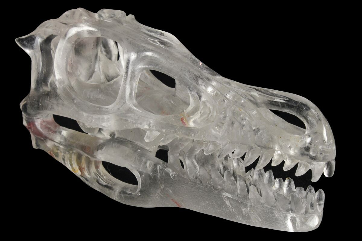 5.2" Carved Quartz Crystal Dinosaur Skull