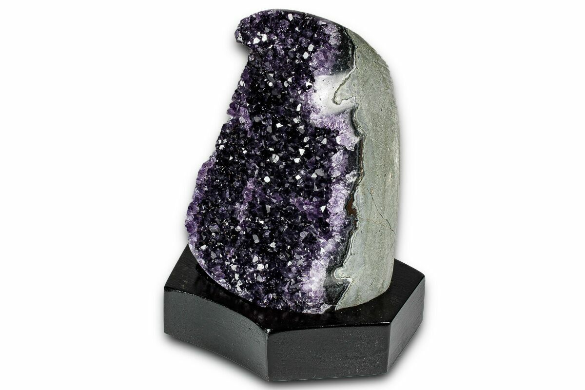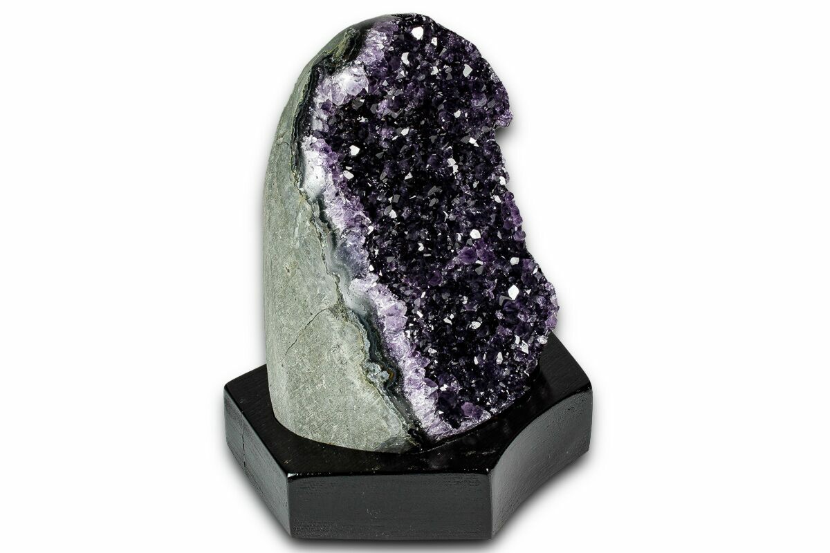5.2" Deep Purple Amethyst Geode With Wood Base - Uruguay