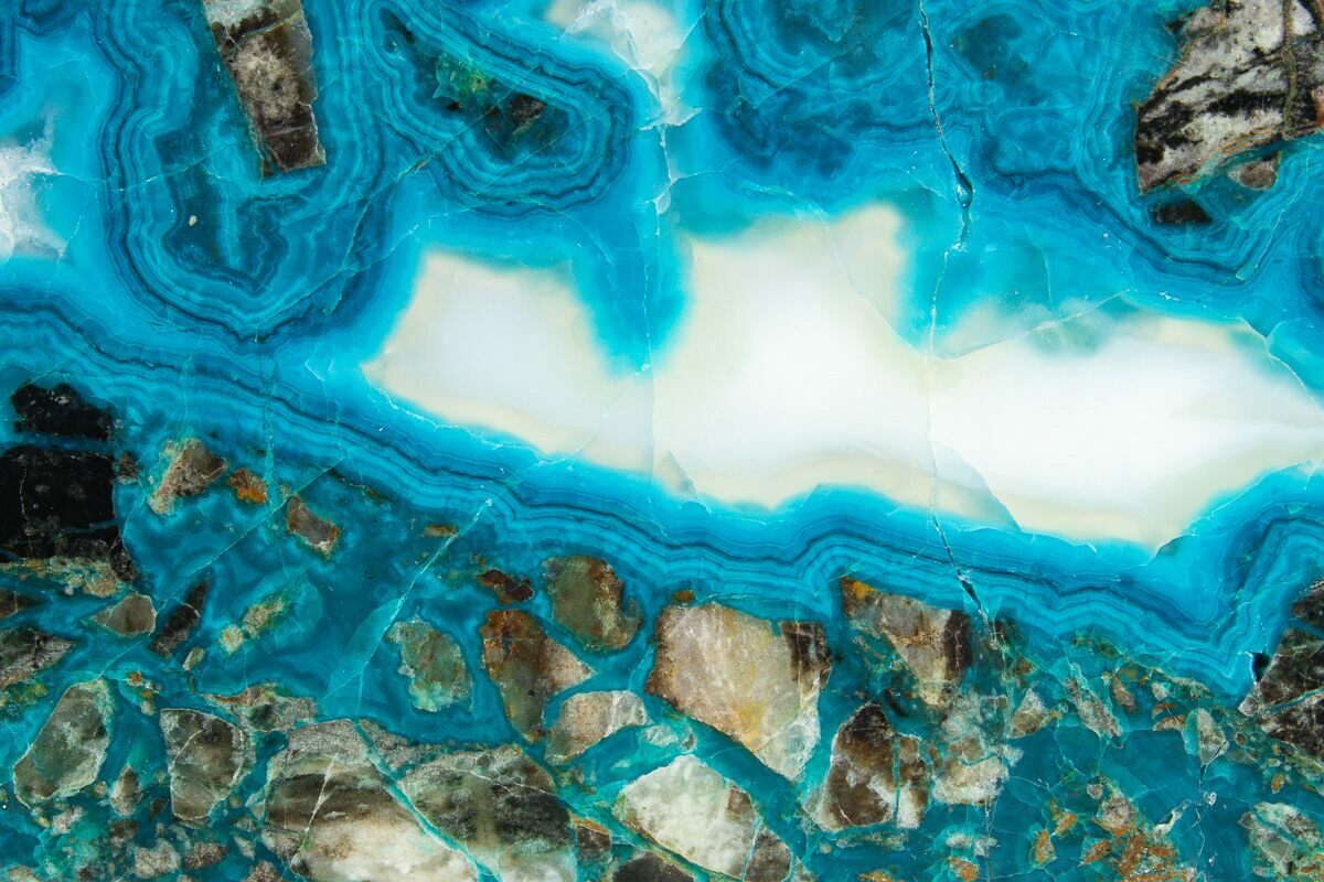 Although Bagdad Mine is one of the largest copper deposits in the world, it also produces absolutely breathtaking chrysocolla specimens. Our phenomenal specimens are typically a banded aggregation of chrysocolla, malachite, and quartz crystals. These minerals form in oxidation zones over the large copper deposits that are actively mined for the increasingly important metal. This means that many of these stunning minerals are thrown away in the overburden during the ore extraction process.