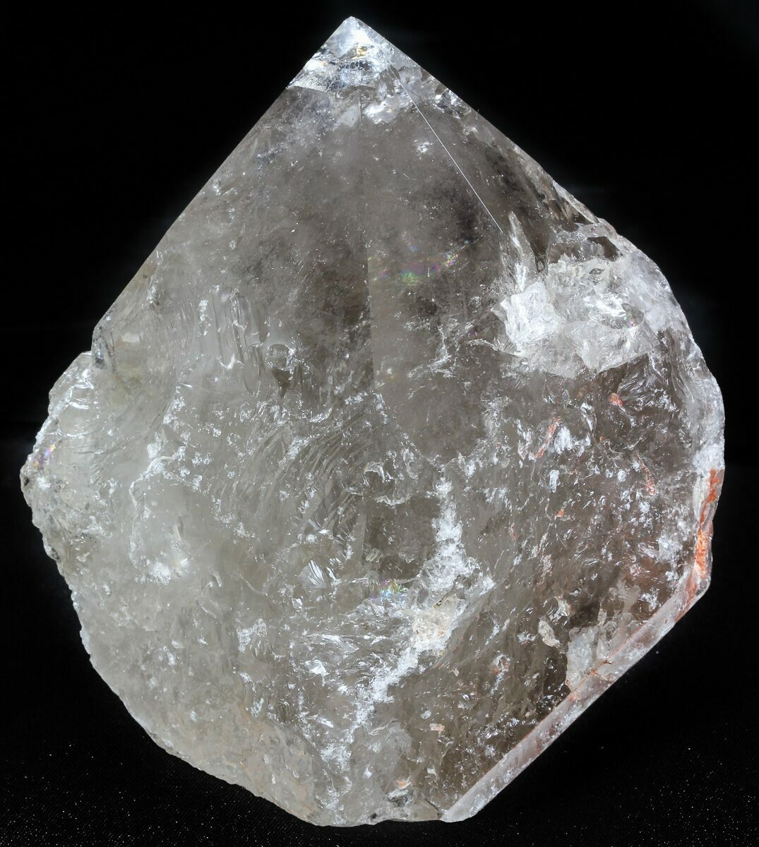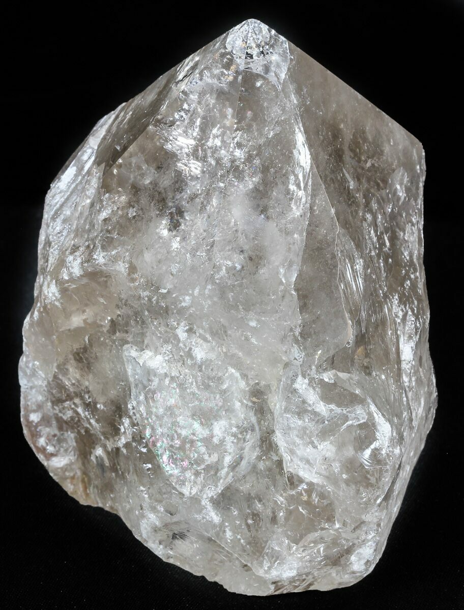 This is a large, smoky quartz crystal point from the mines in Brazil. It's 5.2" long the base has been cut flat so that it stands up on a flat surface. The termination has some polishing done to it. It has a nice light smoky color and is transparent when backlit. The coloration is natural.