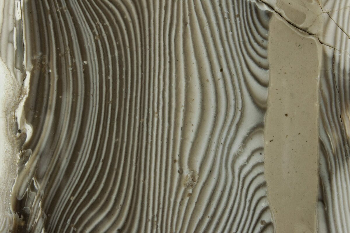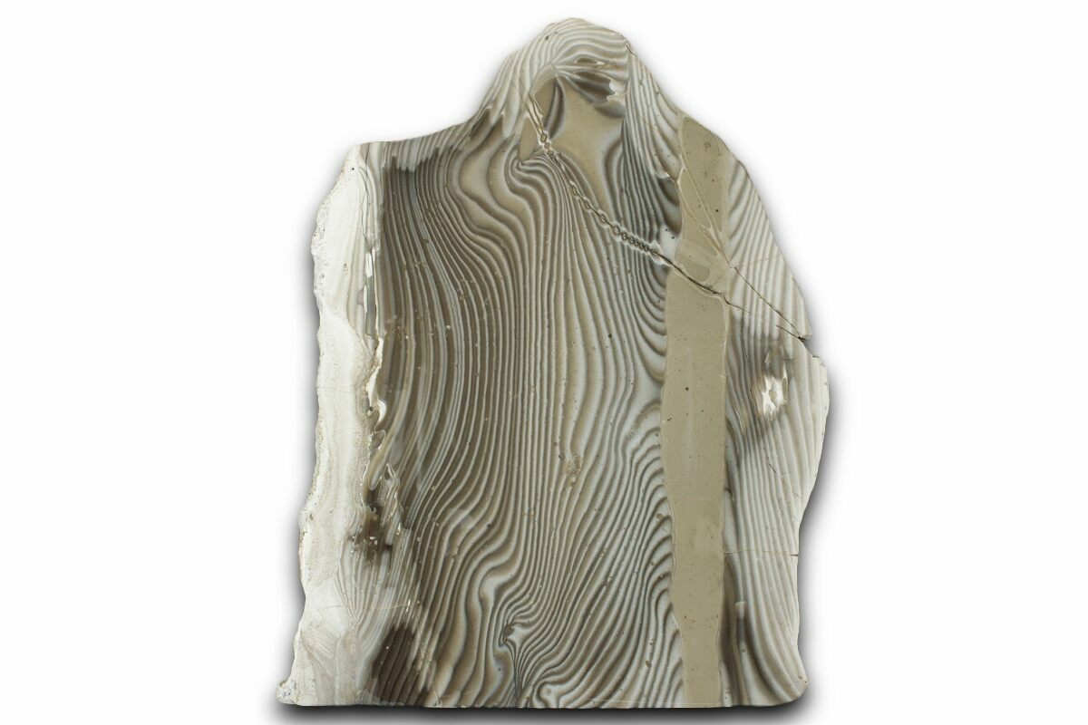 This is a polished section of striped flint, collected from the Swietokrzyskie Mountains of Poland. This form of flint is fairly rare and typically displays a striking, banded striping pattern, hence its use today in jewelry. The cream, brown, and mahogany colors appeal to the senses in their swirled patterns, and are reminiscent of latte art.