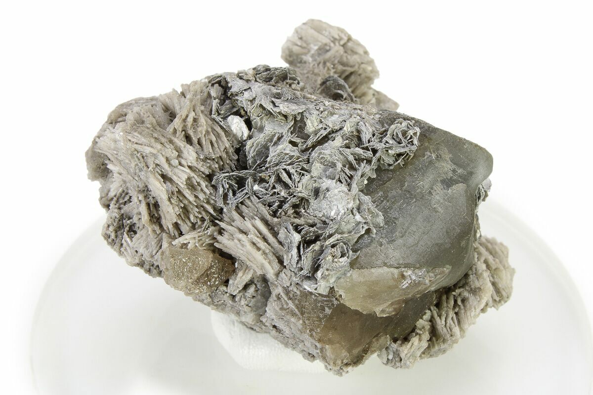 This is a gorgeous, polychromatic topaz crystal cluster collected from the Volyn deposit in Zhytomyr Oblast, Ukraine. The topaz crystals display beautiful blue and brown coloration. It has been mounted to an acrylic display base with mineral tack.