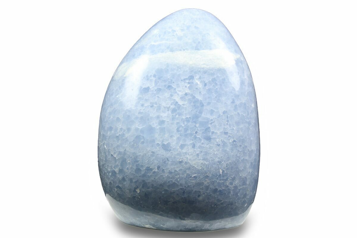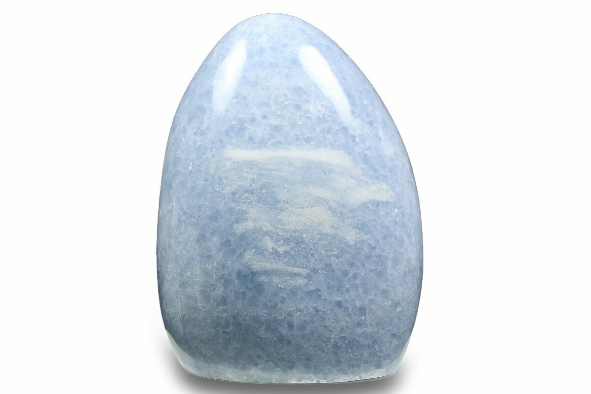 This is a polished, free-standing blue calcite sculpture. The base has been cut flat to allow for display without the use of a stand. A truly gorgeous piece!