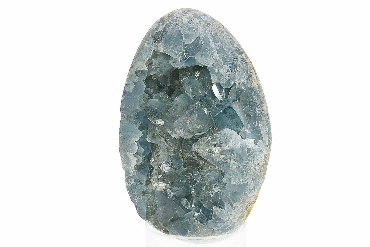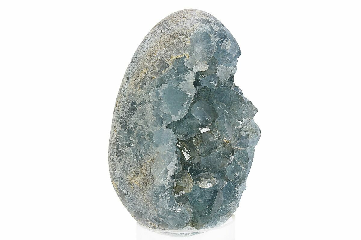 This is a sky blue celestine (celestite) crystal geode which has been polished into an egg shape. The crystals on this specimen have a beautiful luster.