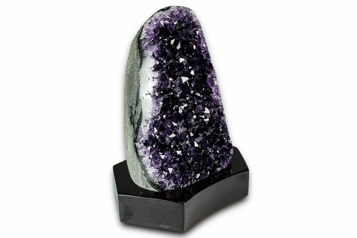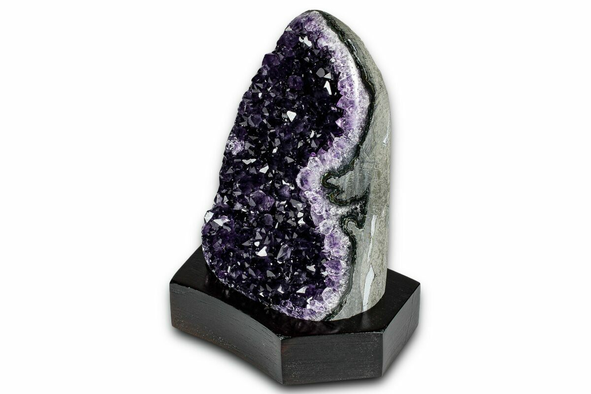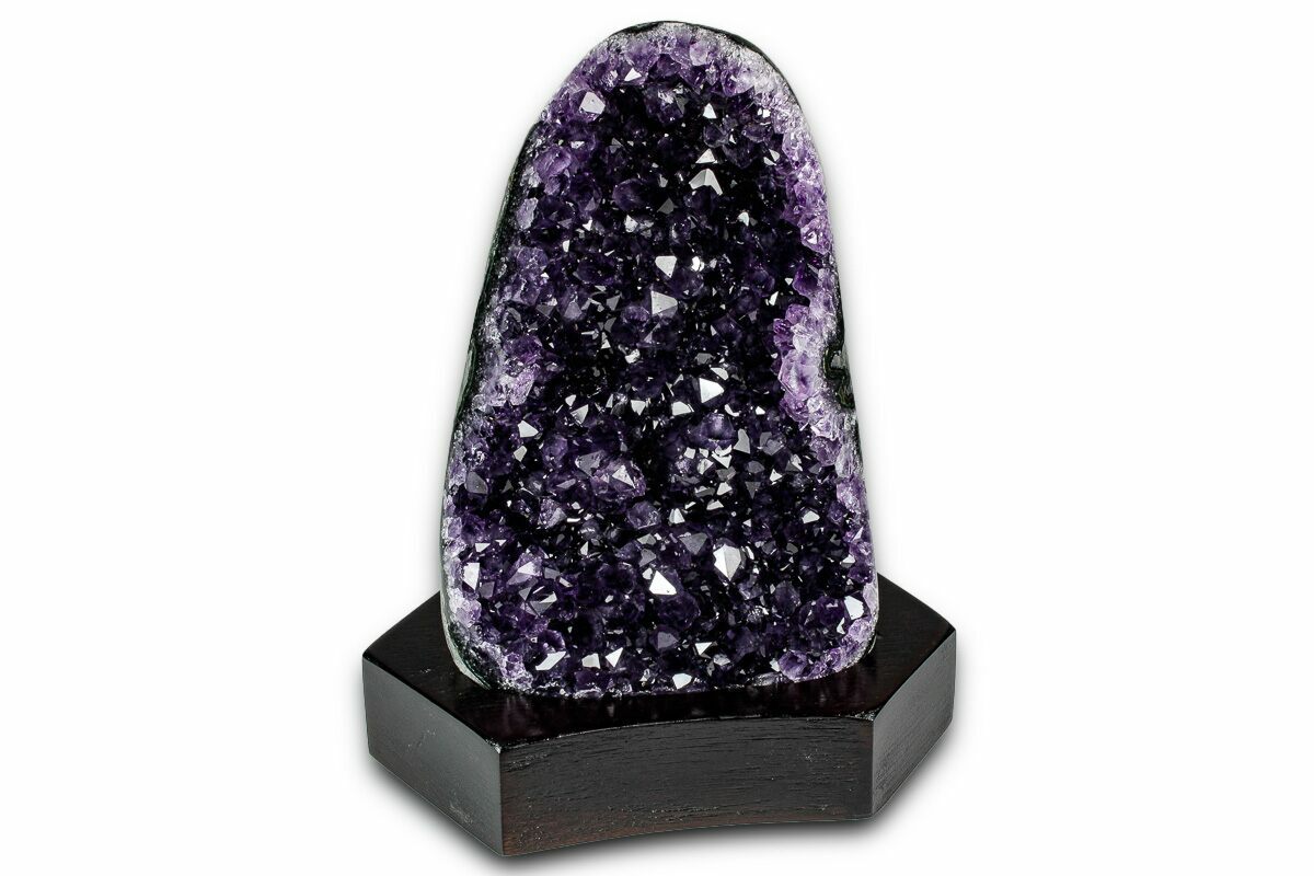 5.4" Deep Purple Amethyst Geode With Wood Base - Uruguay