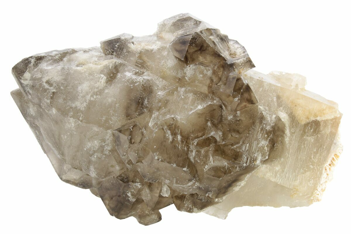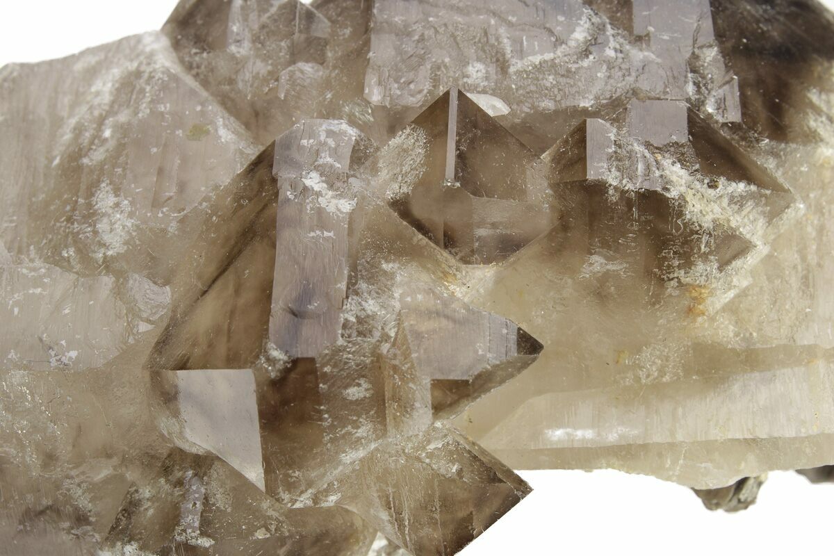 This is a natural smoky quartz crystal cluster from Minas Gerais, Brazil. This type of smoky quartz is commonly marketed as "smoky elestial quartz", or in some cases "jacaré" (Portuguese word for alligator) quartz for some specimens' resemblance to alligator skin. It features a gorgeous glassy luster and mica along one side of the crystal.