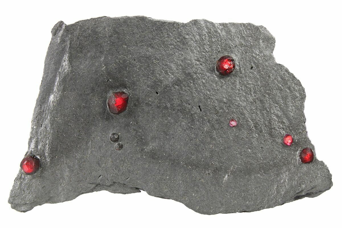 5.4" Plate of Six Red Embers Garnets in Graphite - Massachusetts