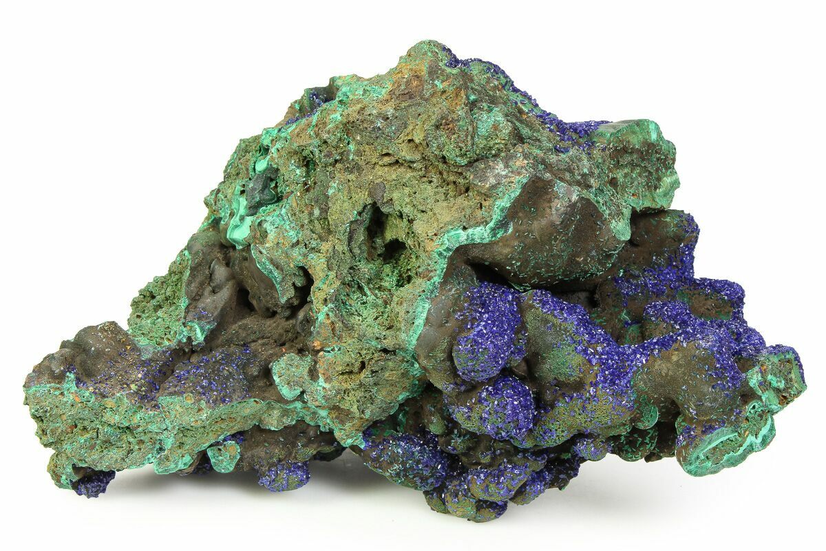 5.4" Sparkling Azurite Crystals with Botryoidal Malachite - China
