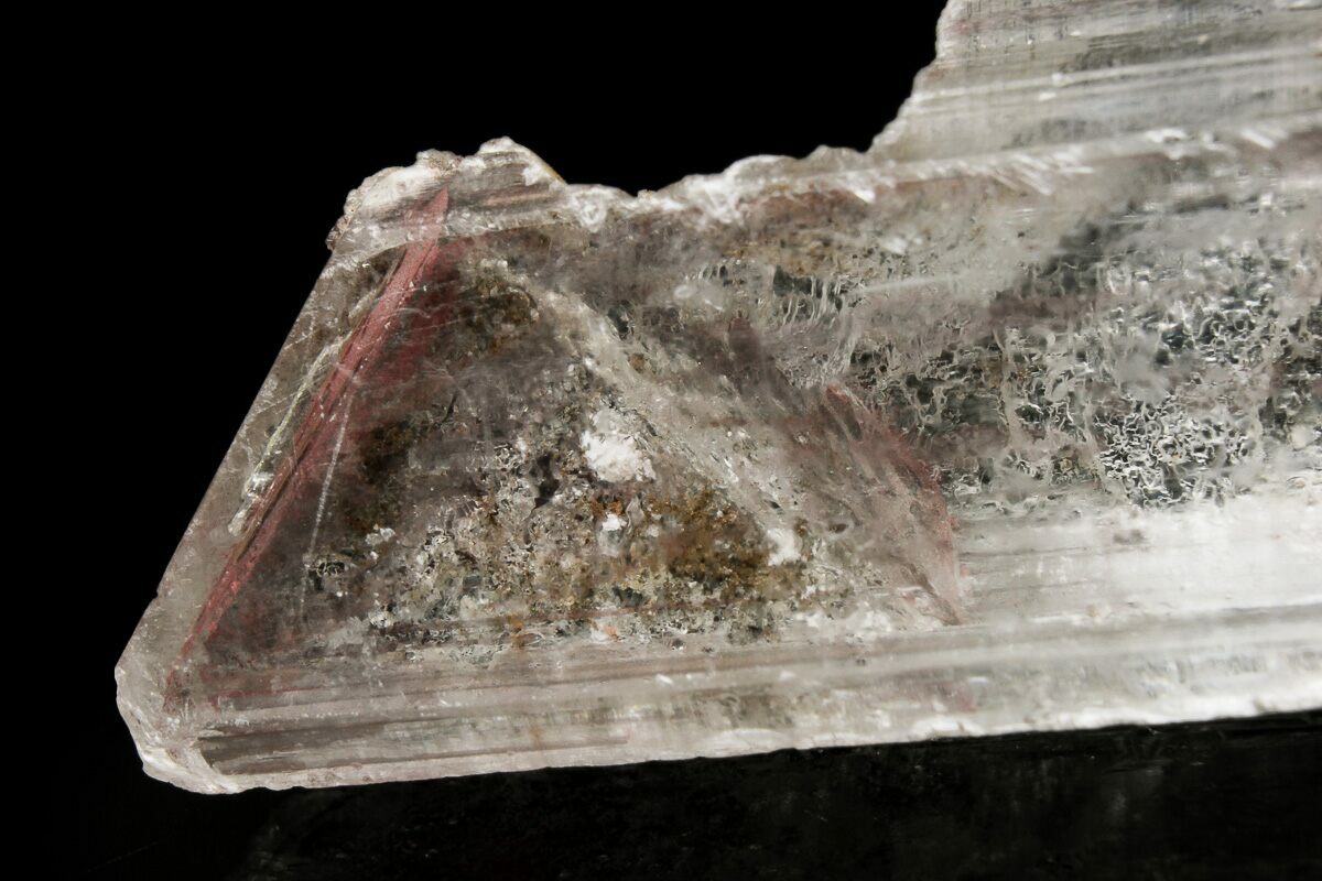 5.4" Water-Clear, Selenite Crystal with Hematite Phantoms - China