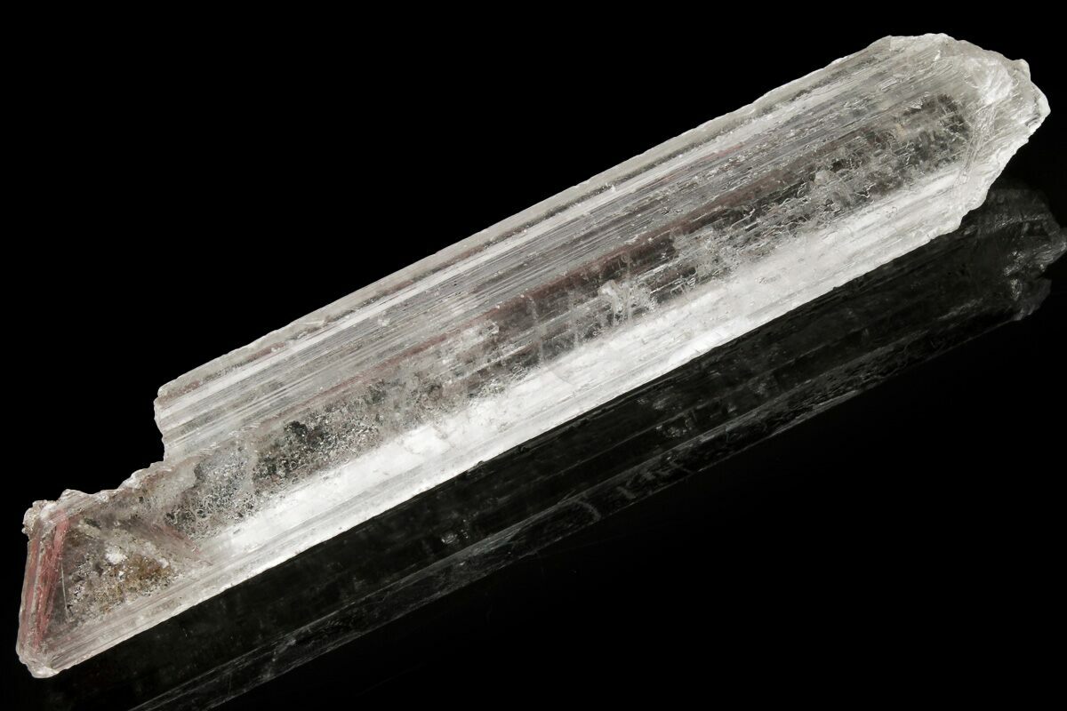 This is a gorgeous, 5.4" long, water-clear selenite crystal collected from China. Multiple phantoms created by hematite impurities during formation, can be seen within this crystal. There are similar specimens out of the Qinglong mine, however I'm not certain these selenite crystals come from this deposit. The exceptional clarity and interesting hematite phantoms make me believe they're from a new deposit in China.