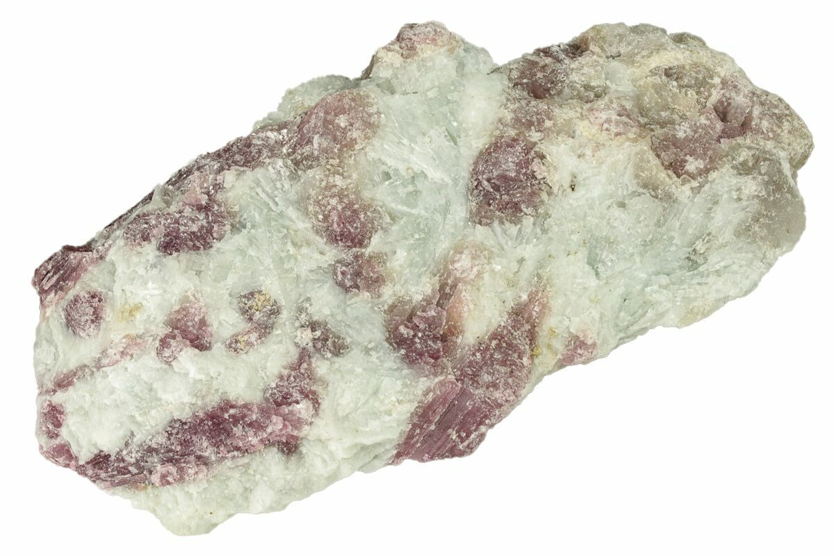 Rubellite is a pink-red variety of elbaite, a member of the tourmaline group. Elbaite is a form of tourmaline that is perhaps the most multicolored mineral. It has been discovered in virtually every color of the spectrum and has dramatically increased in popularity since the 1990s. While specimens are commonly faceted into gemstones, most high quality crystals are left as is, or are cut and sold as cross-sectional slices. Elbaite forms as short, stubby, and/or elongated prismatic crystals, often with lengthwise striations. Elbaite aggregations can occur as botryoidal, columnar, radiating crystals and in compact masses.
