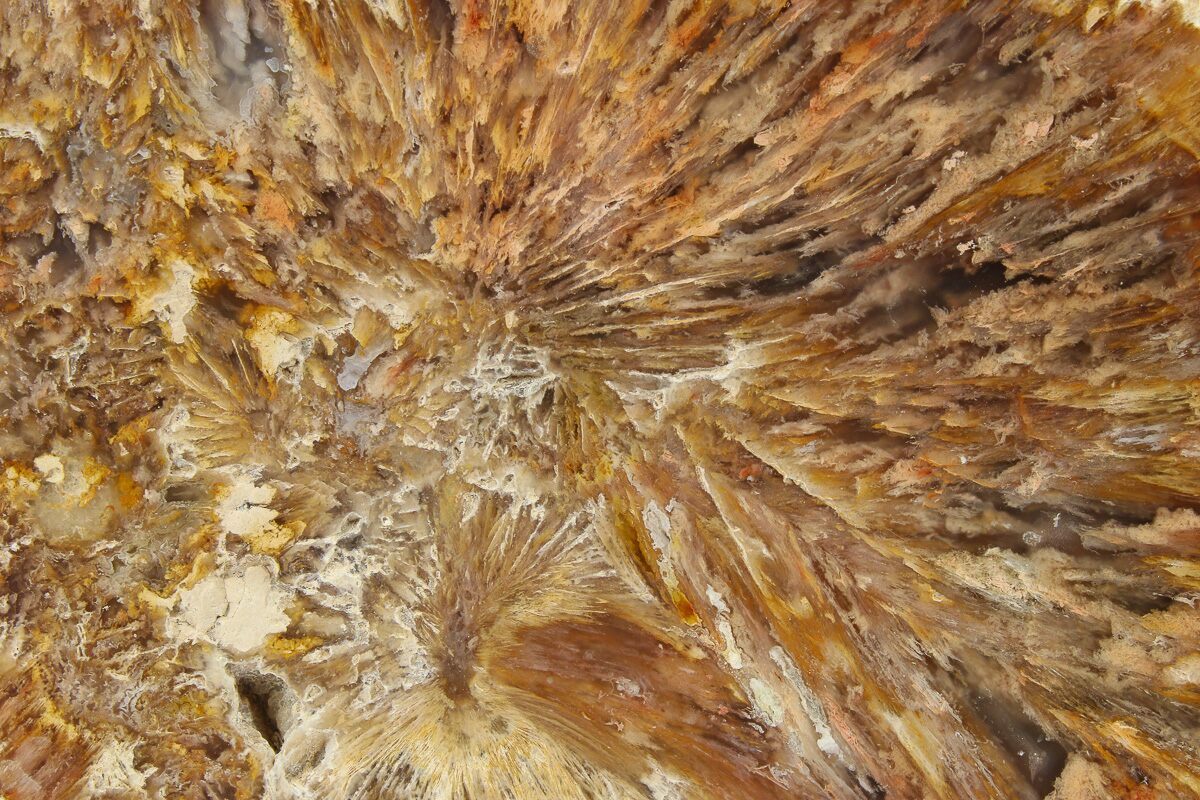 Agate is a variety of microcrystalline quartz (chalcedony) that displays translucence and, in some cases, banding. Agate primarily forms when silica-rich fluids fill pockets within rocks and/or fossils, depositing the silica along the walls of the rock. This process can result in banding patterns, as the compositions and impurities of these depositing fluids change over time. These banding patterns can either form as flat layers, creating linear patterns known as waterline agate, or as rounded layers, forming more common ring-like patterns. These patterns depend on the surfaces available for deposition.