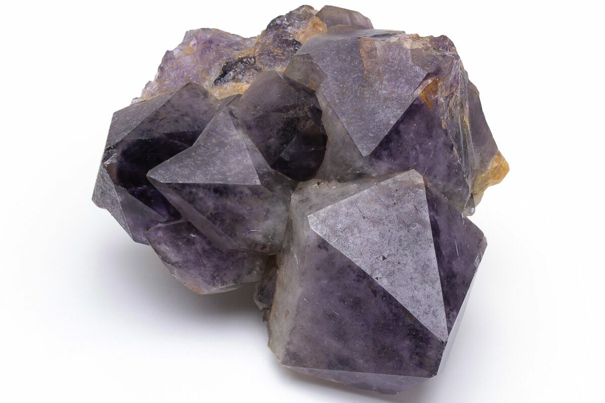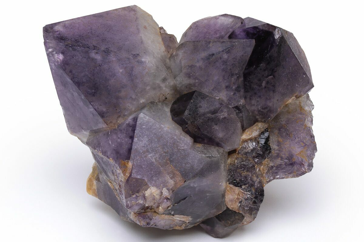 Amethyst clusters from the Democratic Republic of the Congo are renowned for their exceptionally dark, saturated purple color and their impressively large, well-formed crystals. Many Congolese clusters display deep violet to almost inky tones, often with excellent luster and sharp crystal terminations. Compared to amethyst from other localities, Congo material tends to have thicker, more robust crystal points that grow densely together, giving these clusters a bold, architectural presence that is especially prized for display.