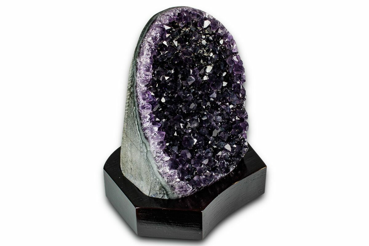 5.5" Deep Purple Amethyst Geode With Wood Base - Uruguay