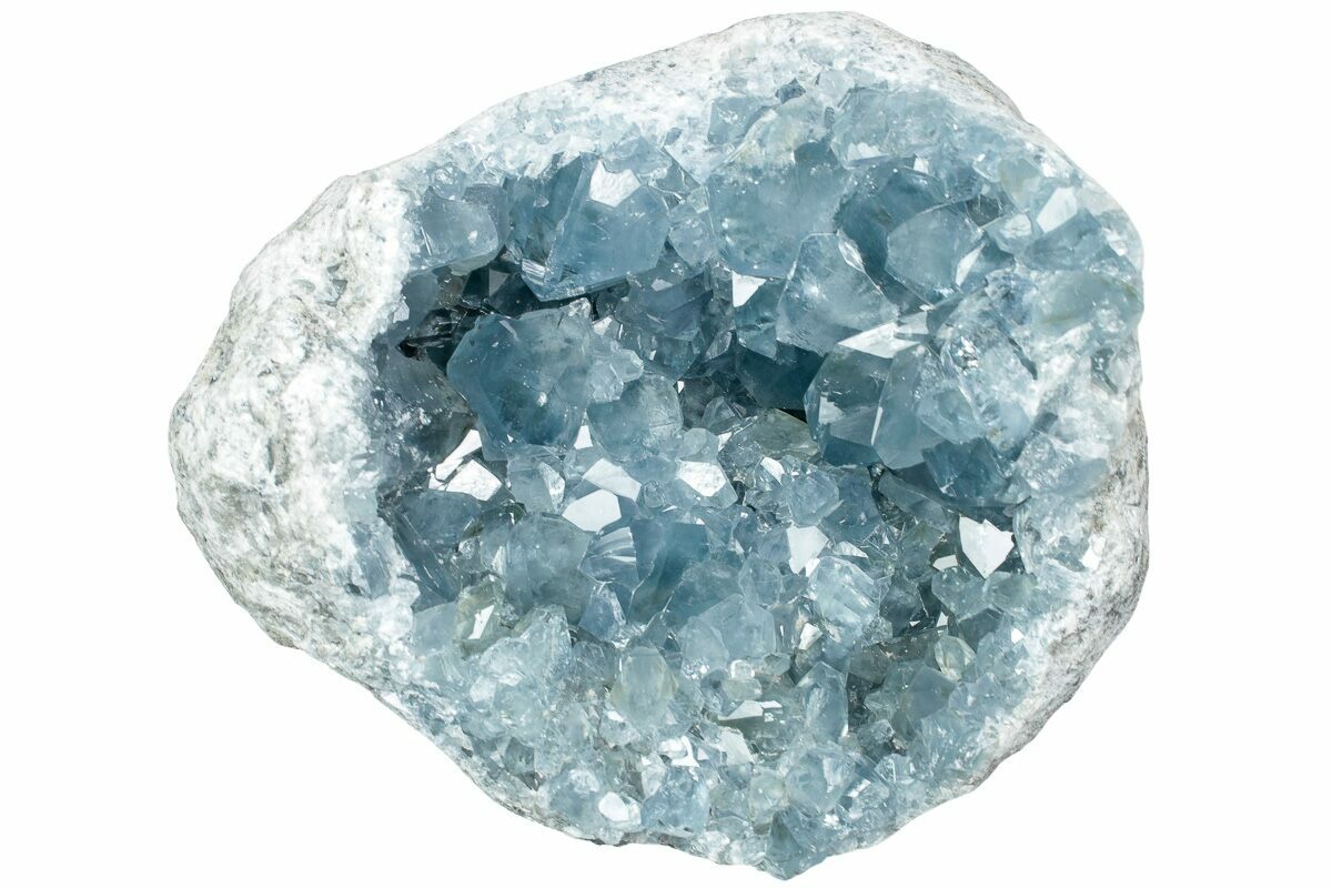 Celestite (or celestine) is a mineral consisting of strontium sulfate (SrSO4). It tends to form attractive, well-shaped crystals that are often found inside of geodes. One of the main sources of celestine is the deposits on the northwestern coast of Madagascar.