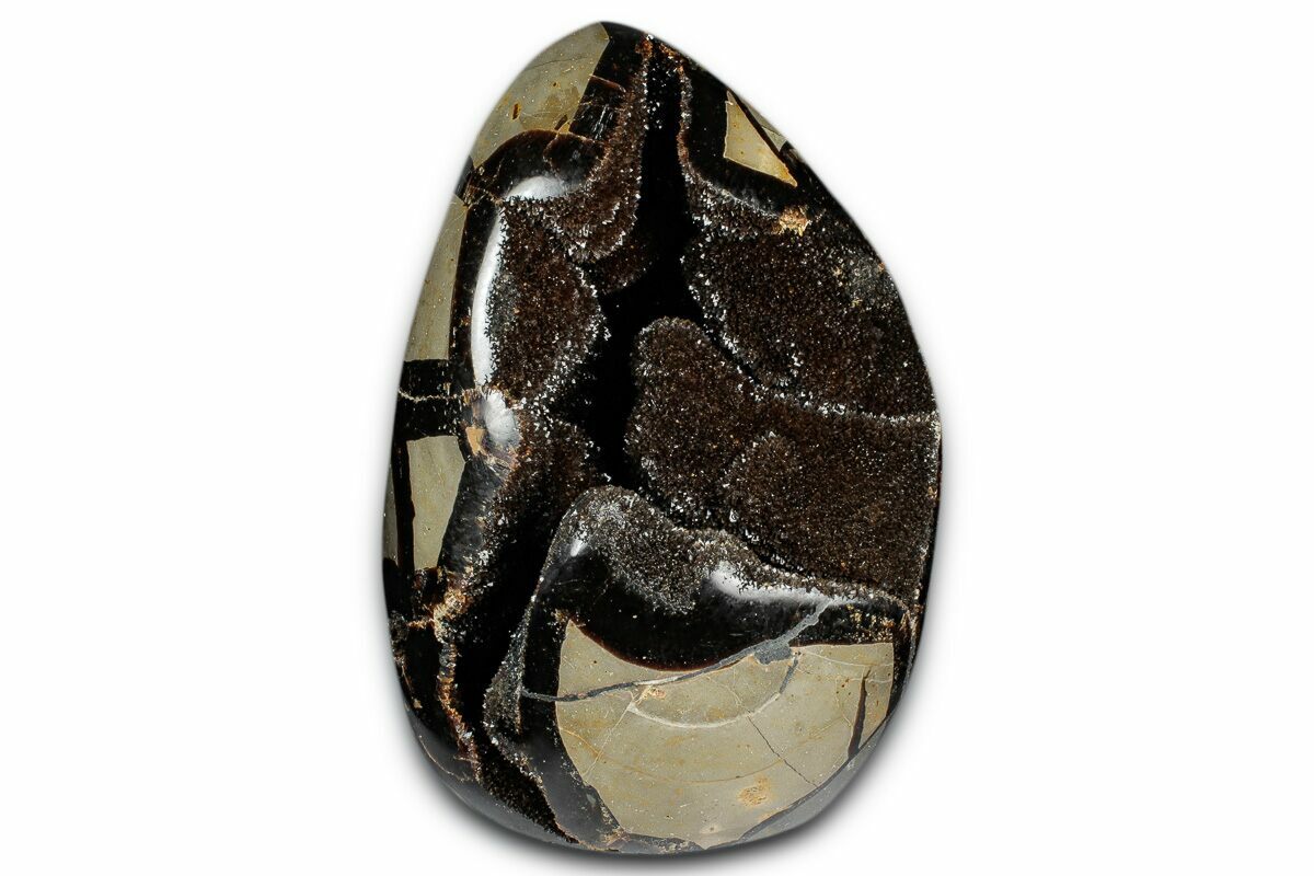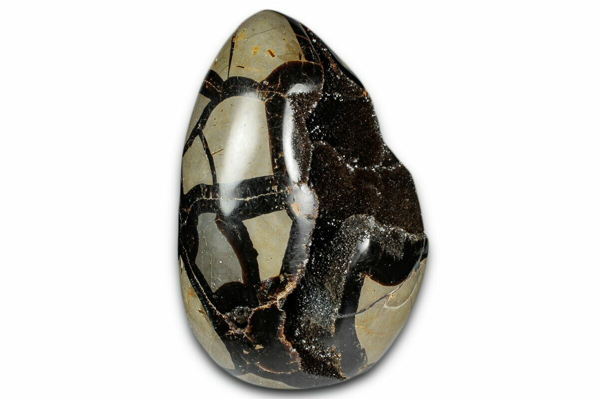 5.5" Free-Standing, Polished Septarian Geode - Black Crystals