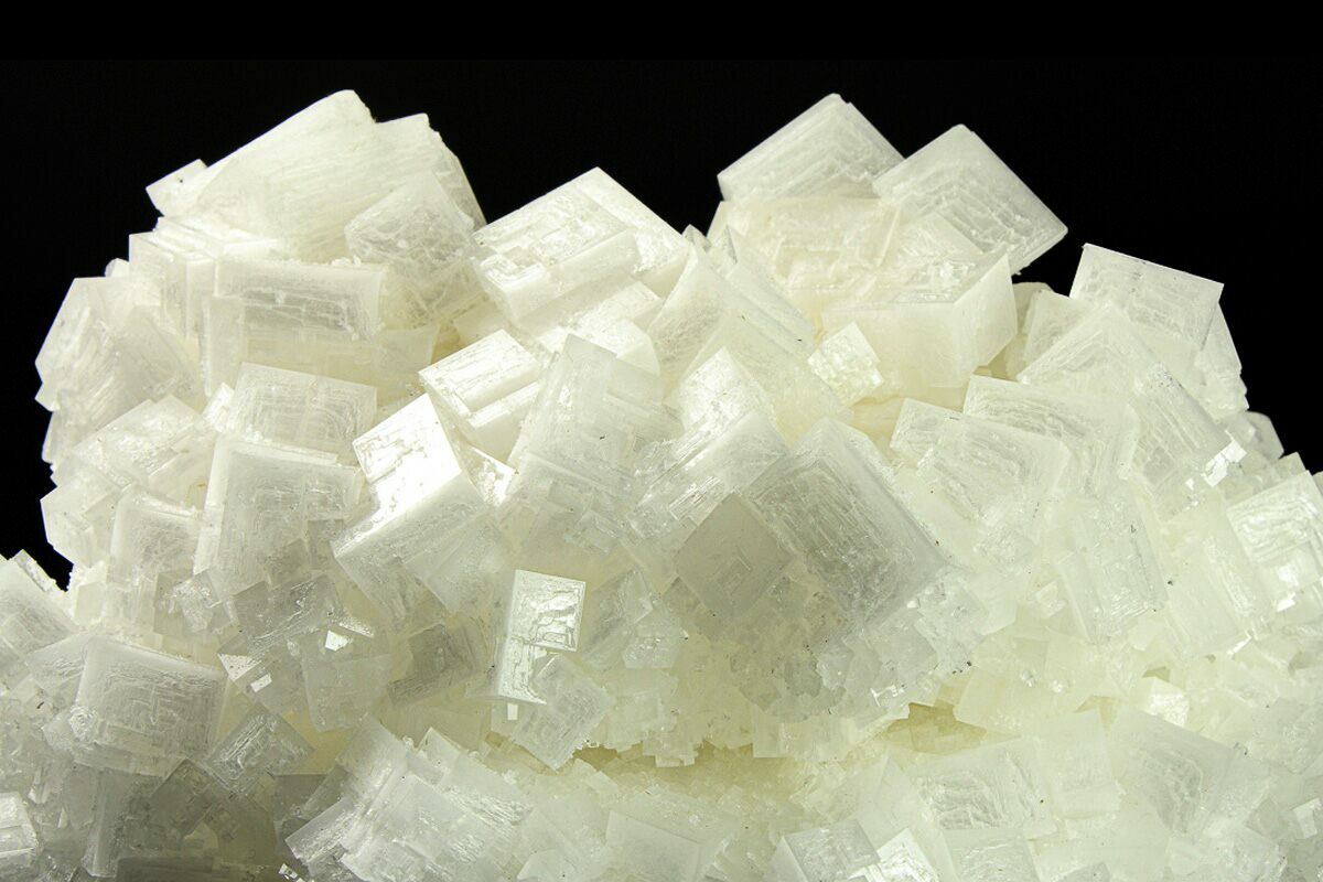 Halite, more commonly known as rock salt, is a form of the mineral sodium chloride (NaCl). It forms when salt-rich waters evaporate and can be colored by mineral impurities.