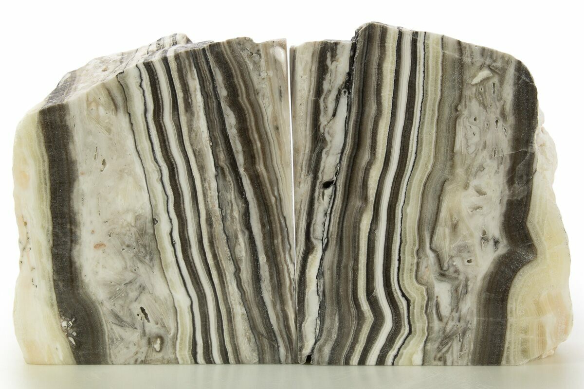 5.6" Polished Banded Zebra Calcite Bookends - Mexico