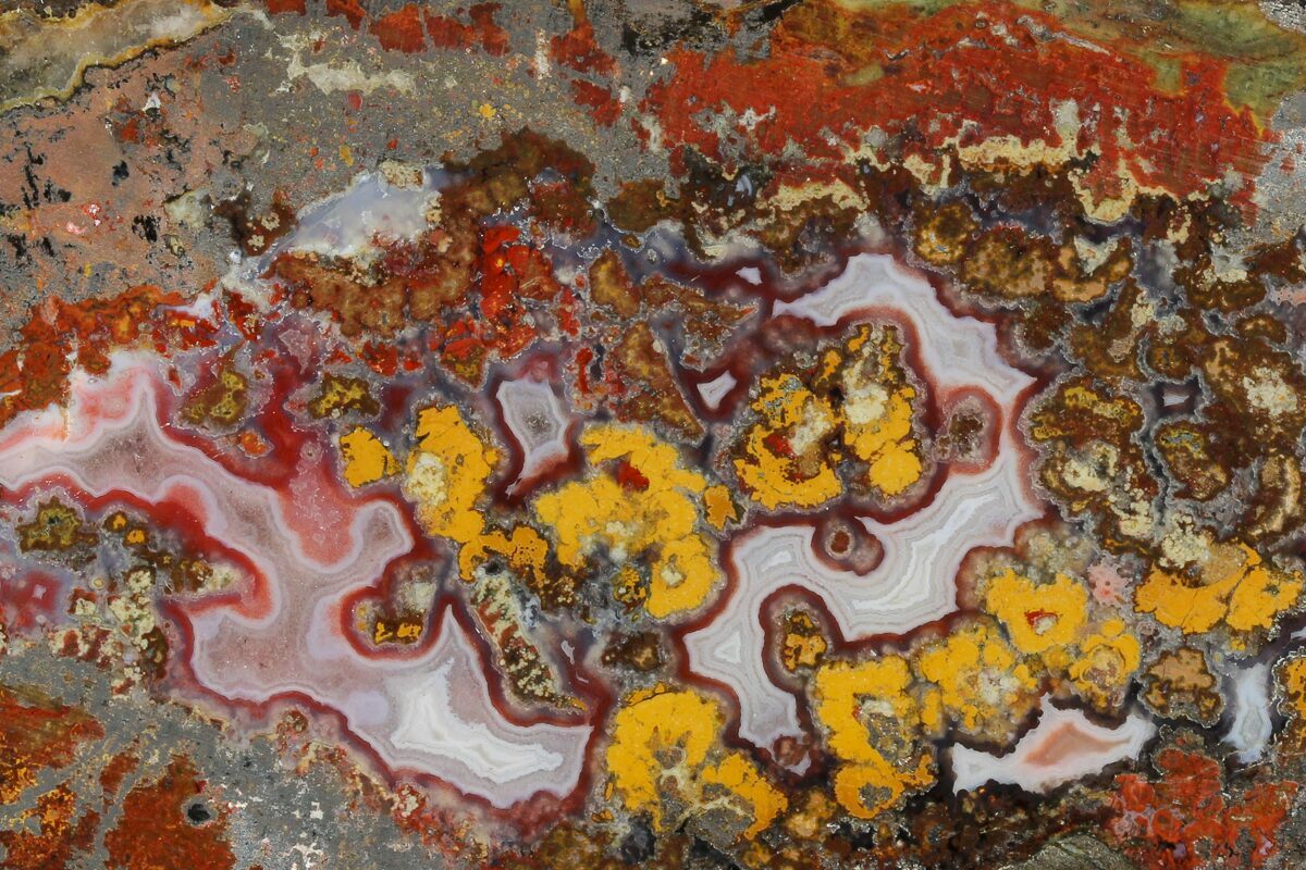 Cruentus agate is the trade name for an agate formation that features vibrant red coloration and occurs in small cavities, veins, or seams in rock. Cruentus is Latin for blood-stained or bloody, which is fitting considering the red coloration strongly resembles the color of blood. These seams often occur in areas where the rock has naturally shifted or fractured, creating cavities that fill in with minerals. Seam agates like this collected from Morocco come out of the Atlas Mountain region near Kerrouchen (also spelled Karouchen or Kerrouchene).