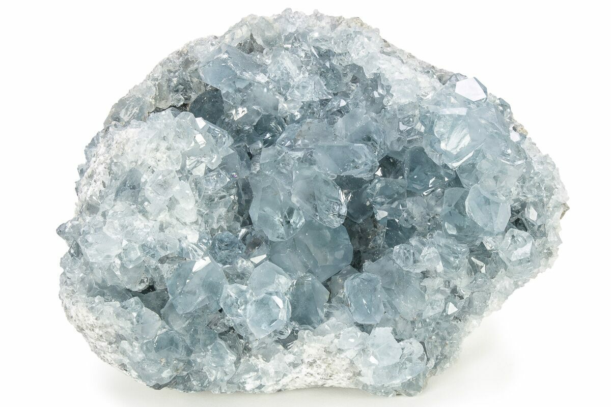 Celestite (or celestine) is a mineral consisting of strontium sulfate (SrSO4). It tends to form attractive, well-shaped crystals that are often found inside of geodes. One of the main sources of celestine is the deposits on the northwestern coast of Madagascar.