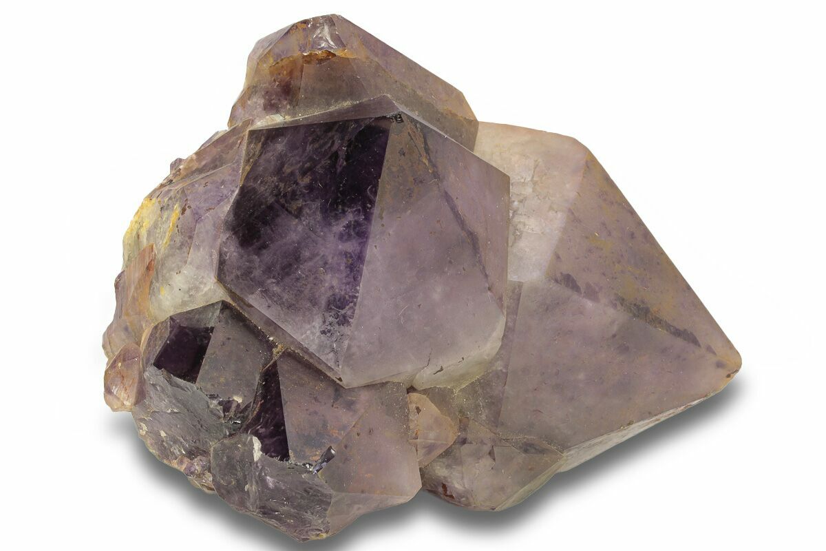 This is a stunning, 5.65" wide amethyst crystal cluster with beautiful purple coloration and exceptional luster, collected from the Democratic Republic of the Congo. These crystals have undergone no color treatment or polishing. The orange-red color across some of the crystals can be attributed to iron oxidation.