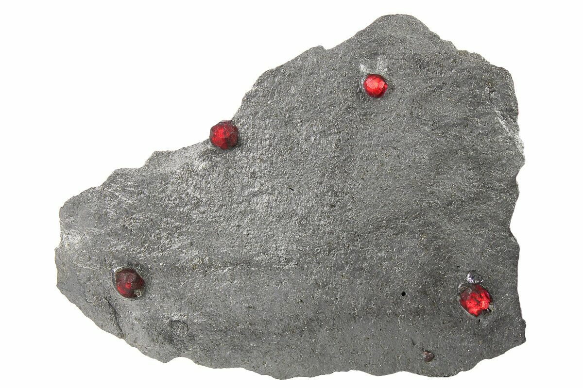 5.7" Plate of Four Red Embers Garnets in Graphite - Massachusetts