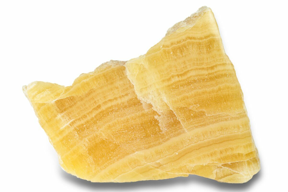 Honeycomb calcite is the name given to a sunny variety of calcite found exclusively in the southern Uinta Mountains east of Salt Lake City in Utah. Its color varies from deep orange to lemony yellow, and is often crisscrossed by whitish veins, giving it a honeycomb appearance. It is often quite translucent and polishes well, making it a popular stone for decoration and lapidary work.
