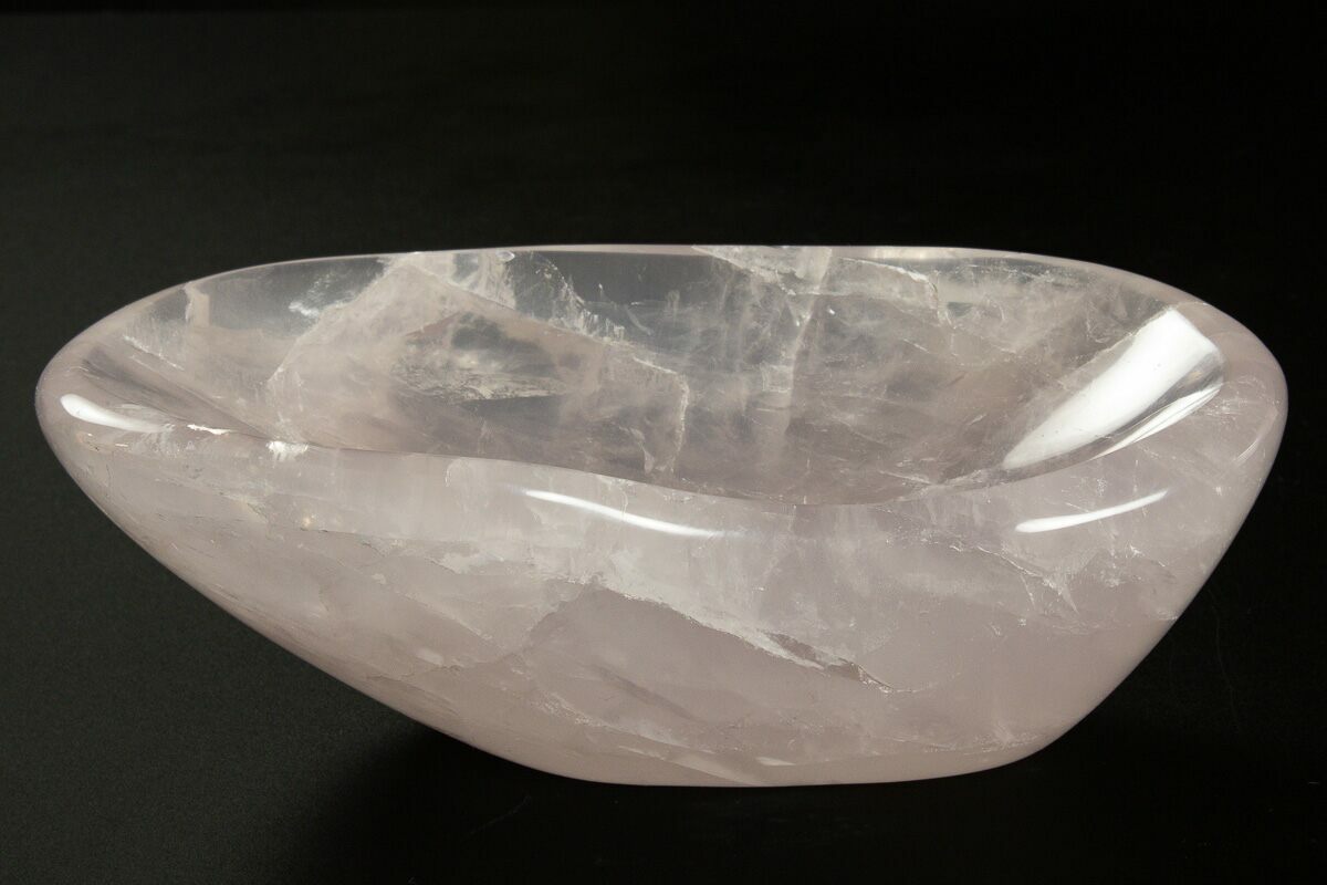This is a gorgeous, 5.7" wide, polished rose quartz bowl/dish. It has been hand carved/polished out of a solid piece of rose quartz crystal.