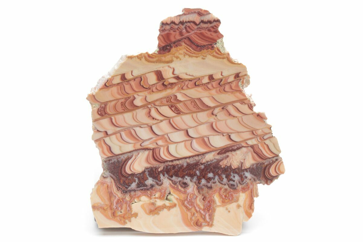 This is a stunning, 5.7" wide polished slab of Rolling Hills Dolomite mined in Chihuahua, Mexico. This beautiful stone features colorful desert hues and dramatic rolling wave shapes. One side has been polished to a glossy-finish.