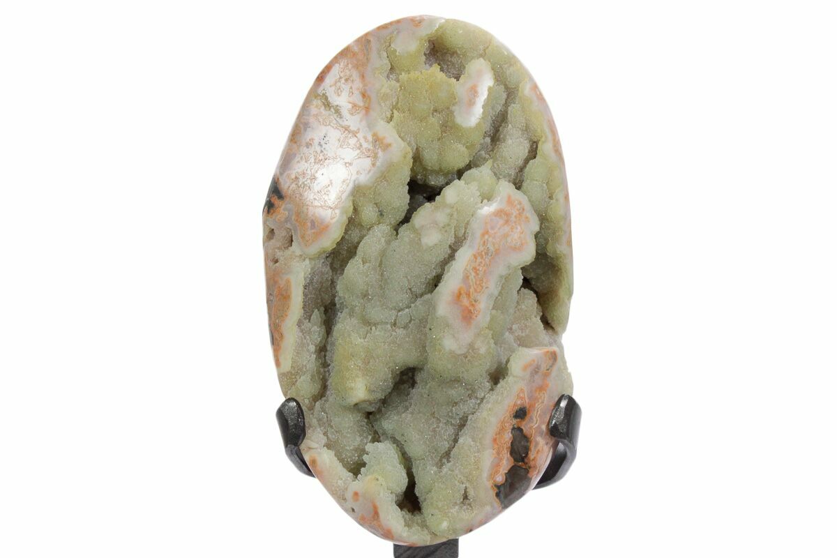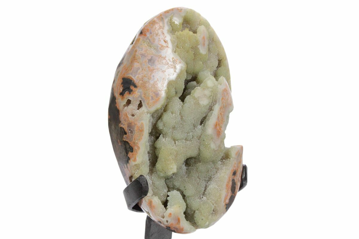 5.7" Sparkling Green Druzy Quartz Formation on Metal Stand