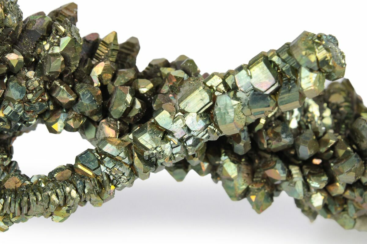 Marcasite is an iron sulfide mineral with the chemical formula FeS2. It is similar to pyrite in both its chemical composition and appearance, but it forms an entirely different crystal structure and is much more reactive to humidity. It is often found within sedimentary rock and hydrothermal deposits, and at one point was used for its sulfur content.