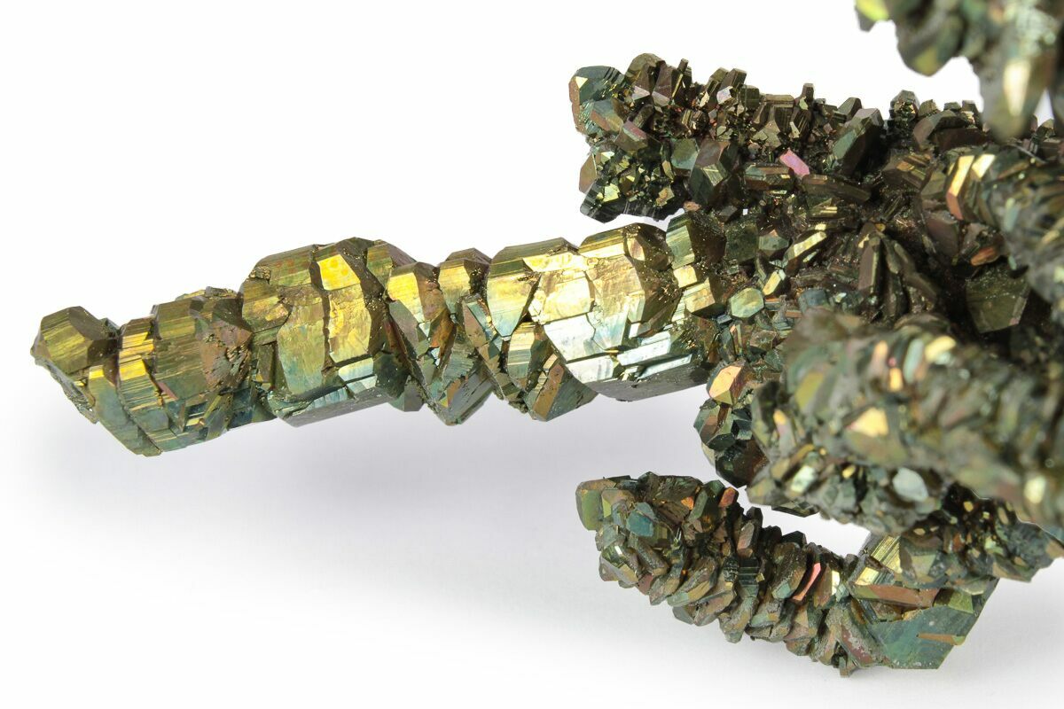 This is a cluster of beautiful, 5.8" long, lustrous marcasite crystal stalactites that was collected from the Linwood Mine in Buffalo, Iowa. The crystals exhibit a gorgeous iridescence and spray outward in every direction.