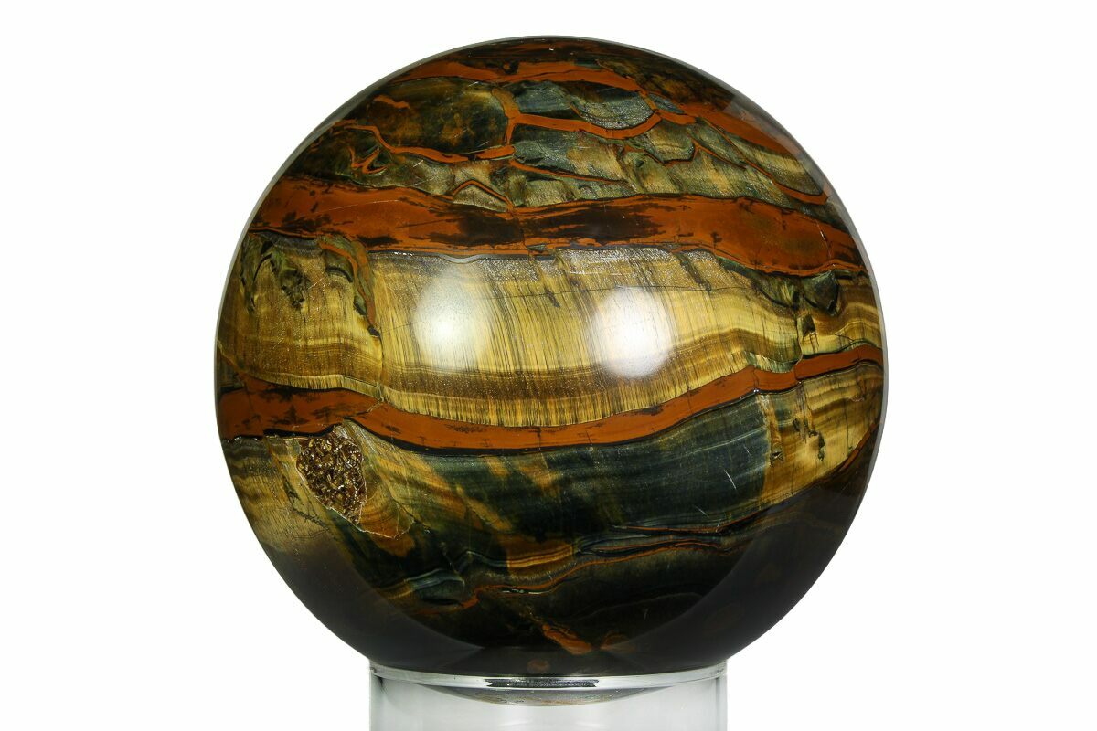 This is a top quality, 5.8" wide polished tiger's eye sphere. The flawless polish really brings out the natural chatoyant effect when the sphere is rotated.