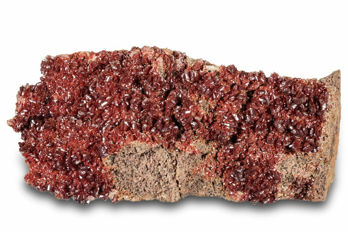5.9" Glittering, Ruby Red Vanadinite Crystals on Barite - Morocco
