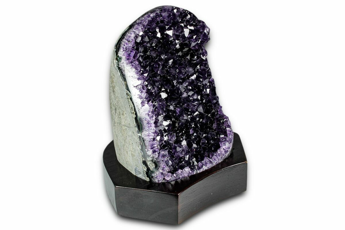 5" Deep Purple Amethyst Geode With Wood Base - Uruguay
