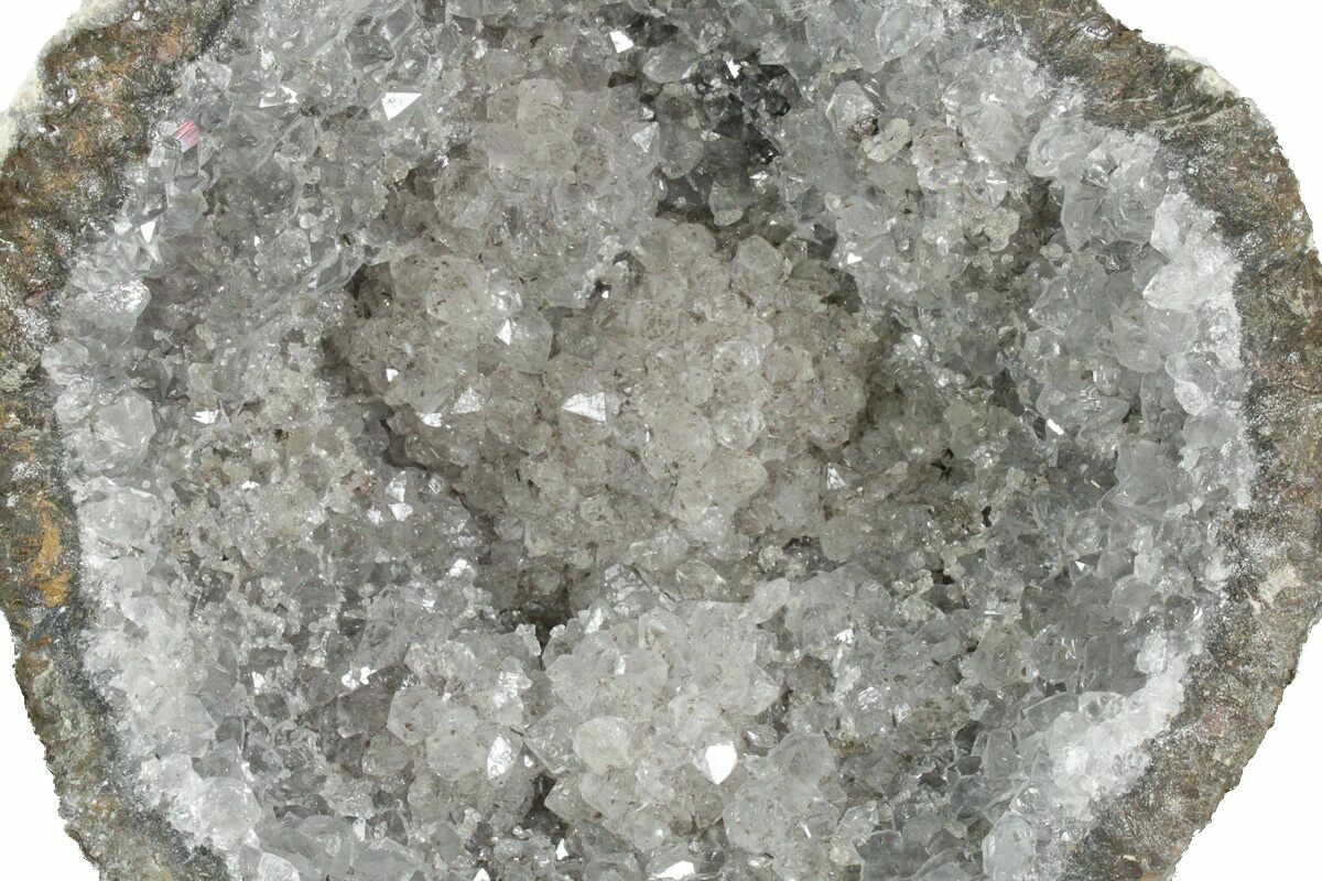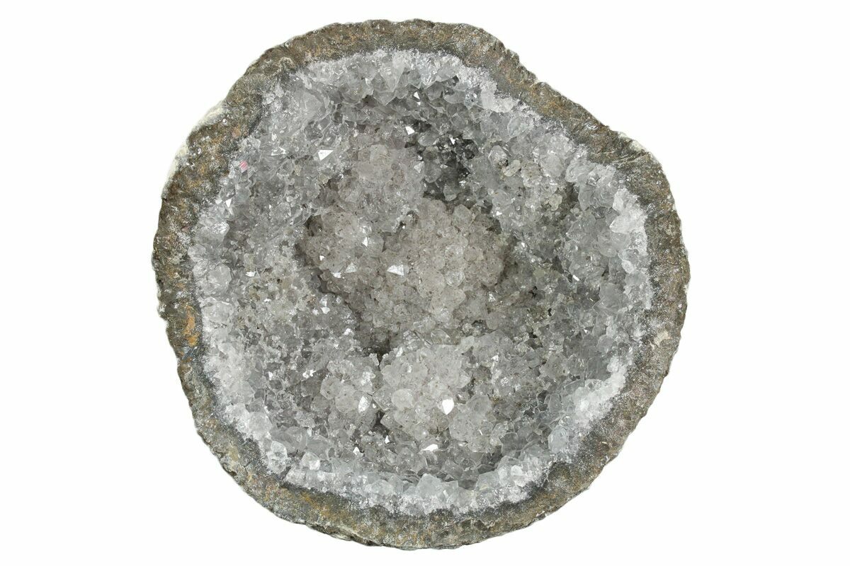 The geodes typically range from about 2-6 inches in diameter and can contain a variety of minerals and crystals. Most hollow geodes contain a variety of quartz, ranging from clear quartz to smoky quartz to rarer amethyst. Many secondary minerals, such as goethite, hematite, mordenite, calcite and galena, may also be present in some geodes.