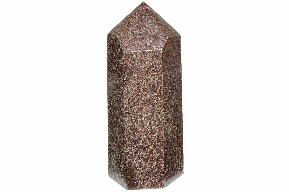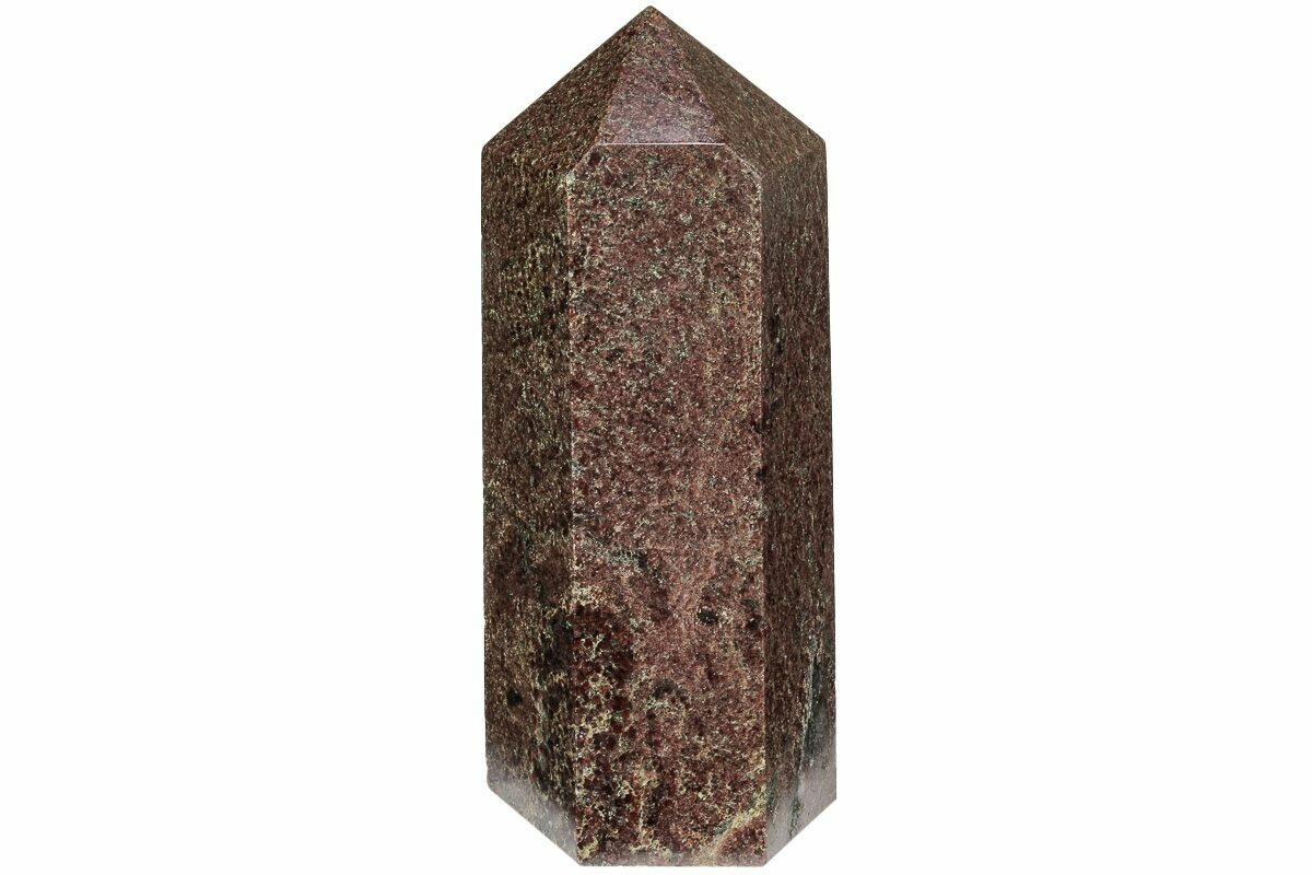 This is a 5" tall section of garnetite that has been polished into the shape of a six sided tower. The base of the specimen has been cut flat for presentation and the entire specimen is polished to a glossy finish.