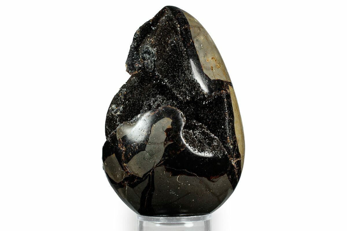 5" Septarian "Dragon Egg" Geode - Sparkly Black Crystals