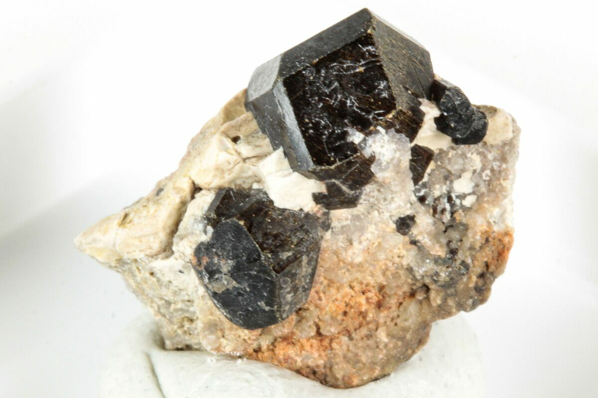 This is a cluster of rare, lustrous, dark chocolate-brown fluor-buergerite crystals in matrix. They were collected from the fluor-buergerite occurrence in San Luis Potosí, Mexico.