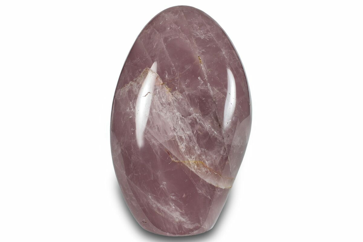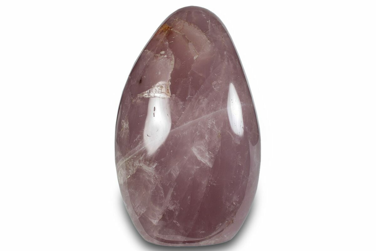 This is a 6.0" tall, polished rose quartz sculpture from Madagascar. This specimen has been polished into a smooth, free-formed sculpture with a cut base for stable display. The rose quartz radiates a beautiful and vibrant pink throughout the entire specimen.