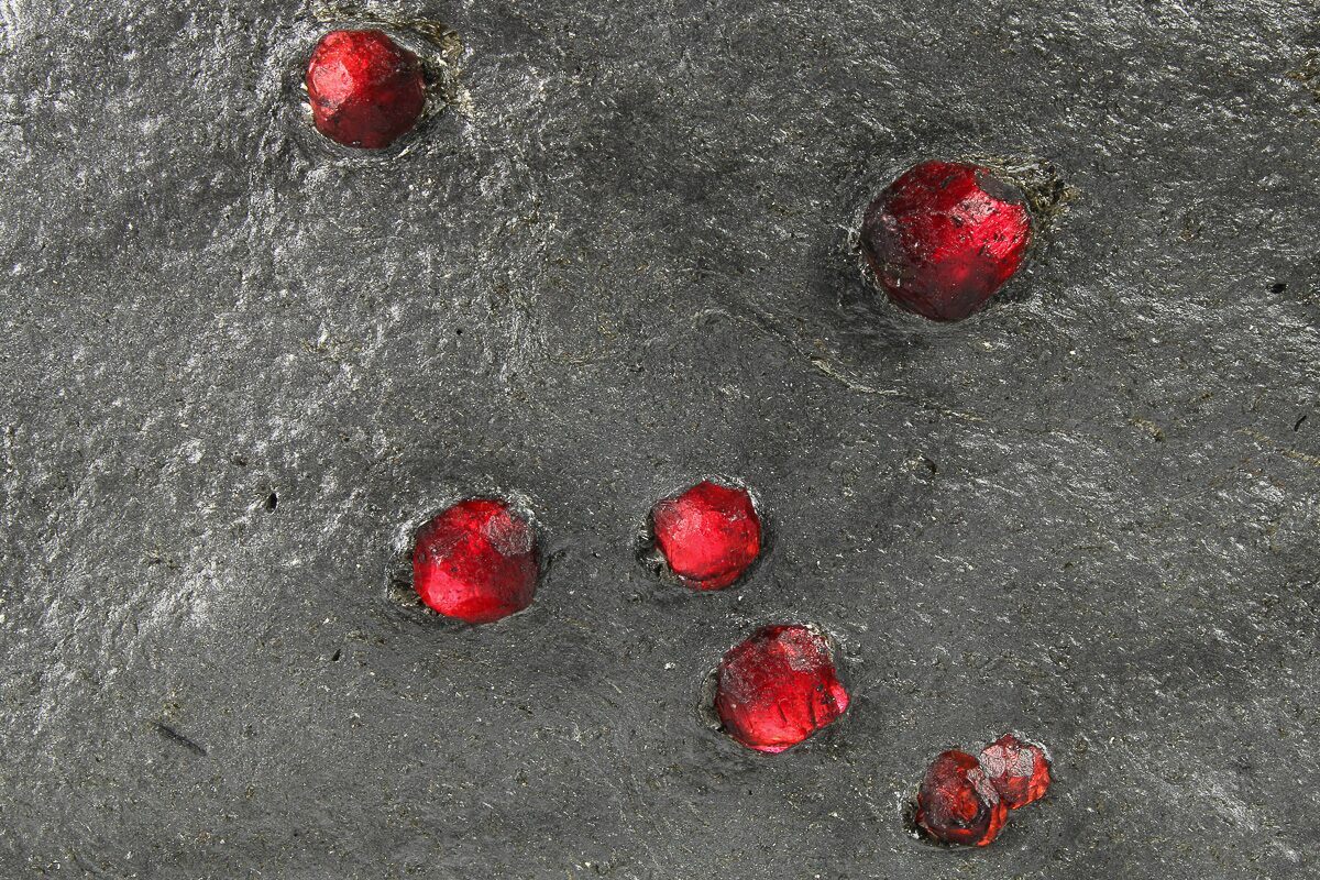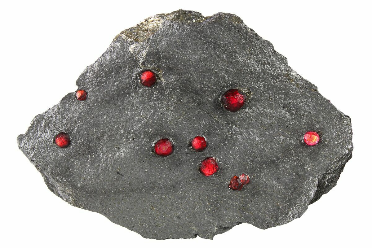 6.1" Plate of Nine Red Embers Garnets in Graphite - Massachusetts