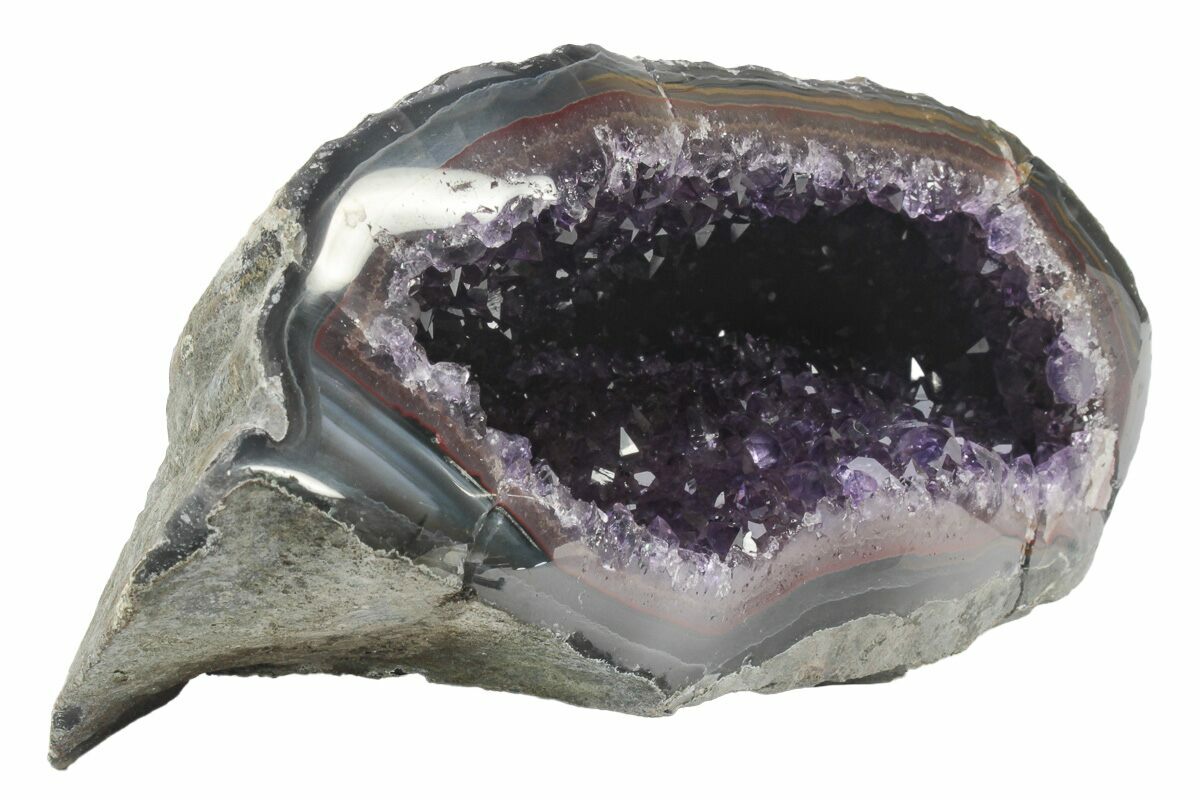Though Brazil produces a greater volume of amethyst, the material from the Artigas region of Uruguay is renowned for its exceptional depth of color and superb crystal quality. Uruguayan amethyst typically forms in dense basalt flows and develops into richly saturated, grape-purple crystals that are considered some of the finest in the world. Because we import our specimens directly from the mines, we’re able to offer outstanding prices on everything from dramatic geodes to premium clusters and collector-grade crystal formations.